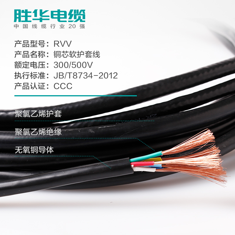 勝華軟護套線RVV2 3 4芯11.52.5平方銅電線電源線信號控制線